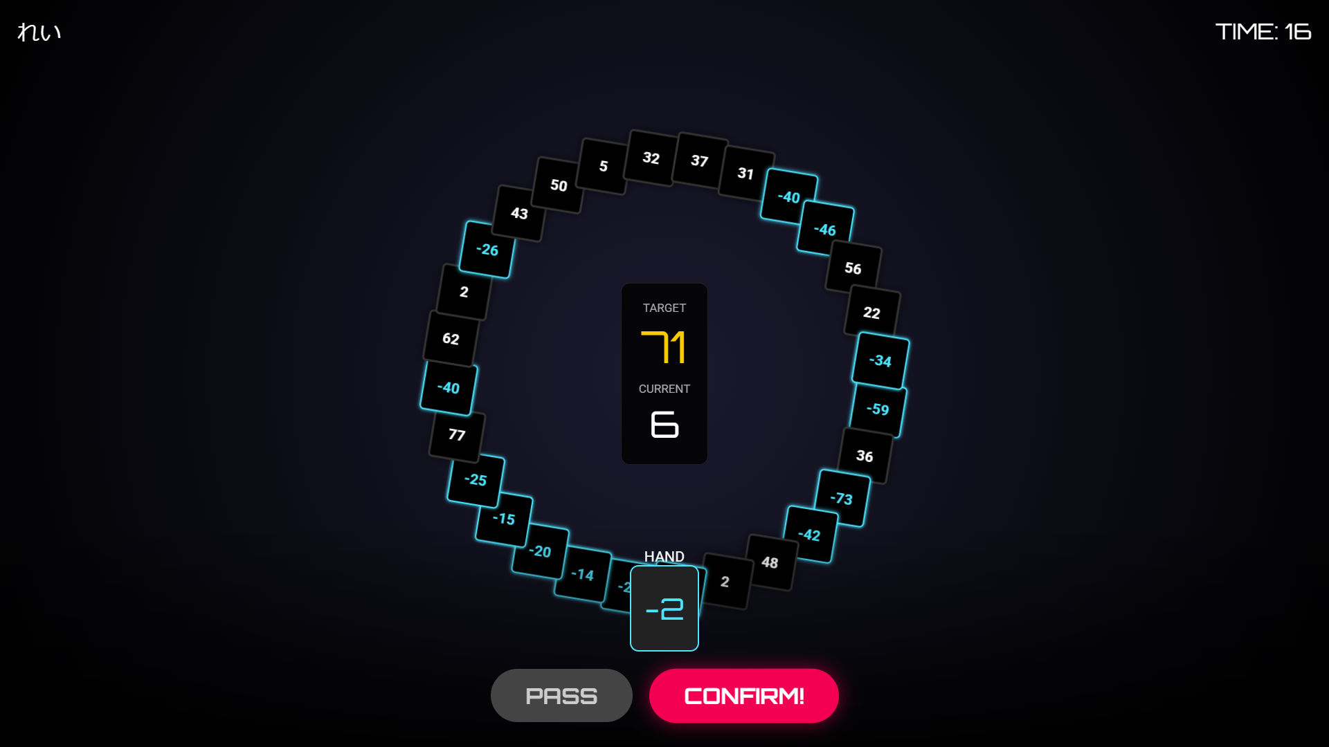 - メインゲーム画面・確定とパスボタンを大きく